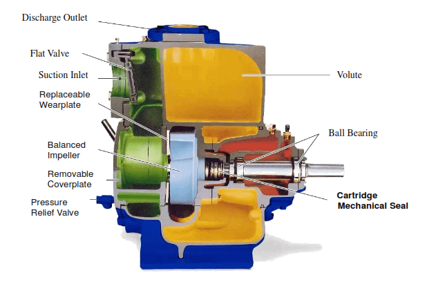 Removable Rotating Assembly: Removal of rotating assembly allows easy inspection of pump shaft or bearings without disturbing pump casing or piping. On most models, simply remove four bolts from the back of the pump and the rotating assembly slides out.